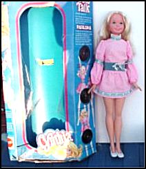 Cynthia was Mattel's alternative to pull-string talkers. Just poke a 2-inch record in her side (similar to the Mattel-O-Phone), push the button and listen to her chatter away about subjects like Indoor Activities, Outdoor Activities and General Topics. Cynthia is a pretty hard find, especially in working order with clean records. Having said that, you can usually still snatch one off of an auction or sales site for under $50. Partial List of Accessory Paks Fashion Fun Hair Fun School Fun |